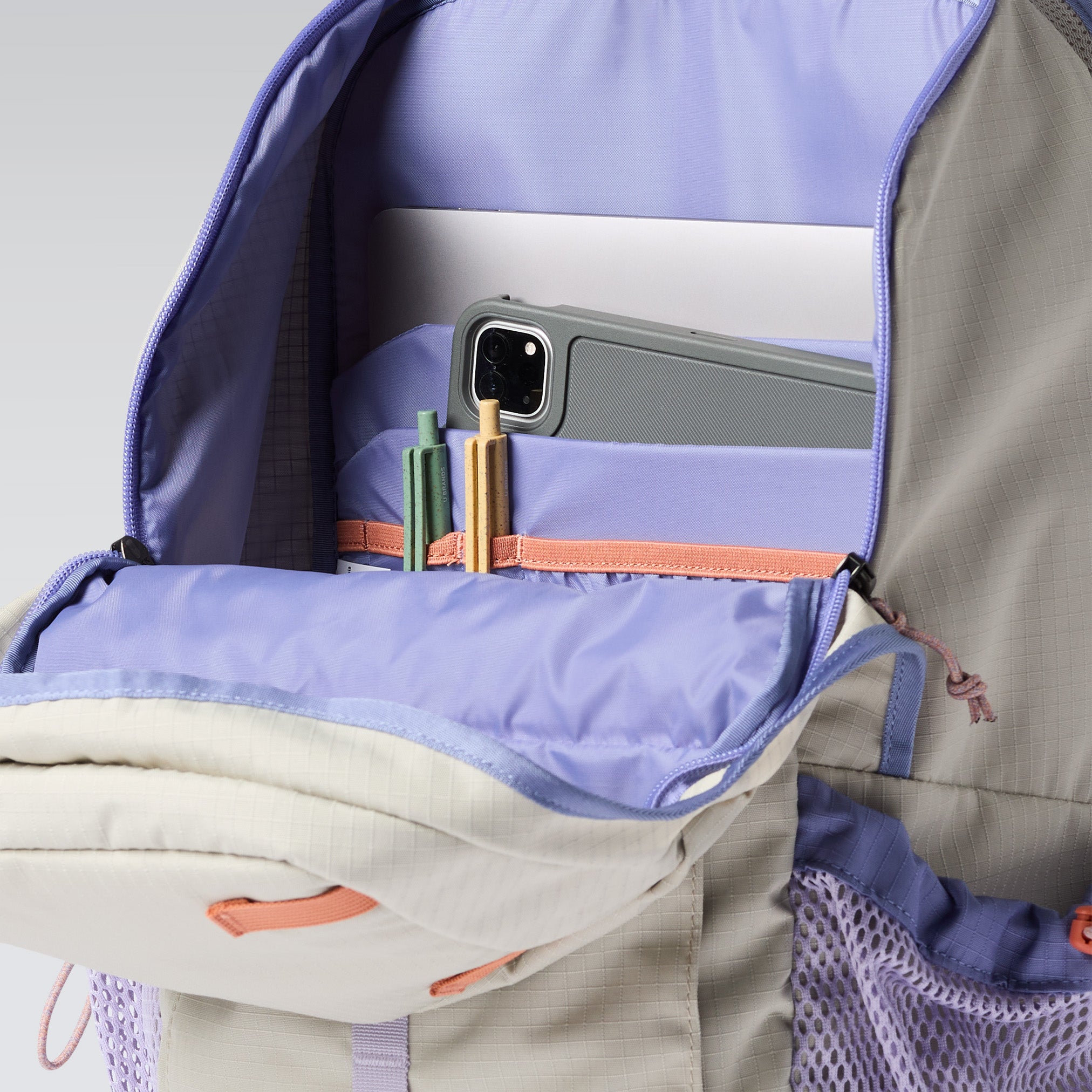 Tanto si llevas el portátil y los libros como una mochila llena de accesorios para el picnic, la Clase 28L Daypack está preparada para un paseo por la ciudad. Está fabricada con tejido de poliéster reciclado y, gracias a la cremallera de cubo invertida, acceder al compartimento principal es pan comido. La funda acolchada para el portátil y los bolsillos interiores garantizan que todas tus pertenencias estén bien guardadas.