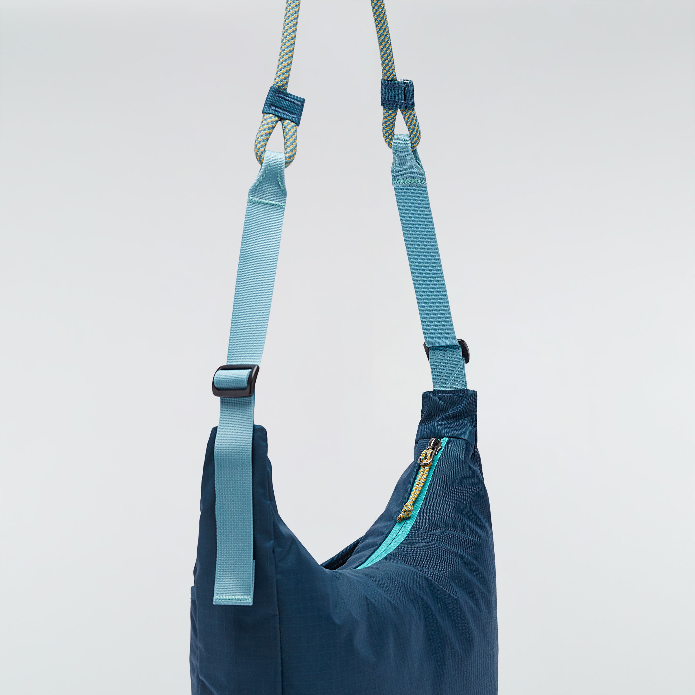 De Trozo Shoulder Bag heeft een unieke schouderriem van klimtouw die je kunt verstellen tot de lengte die het beste bij jouw avontuur past. Een groot hoofdvak, twee binnenvakken en een buitenvak voor accessoires zorgen ervoor dat je altijd je belangrijkste spullen bij de hand hebt in deze alledaagse tas.