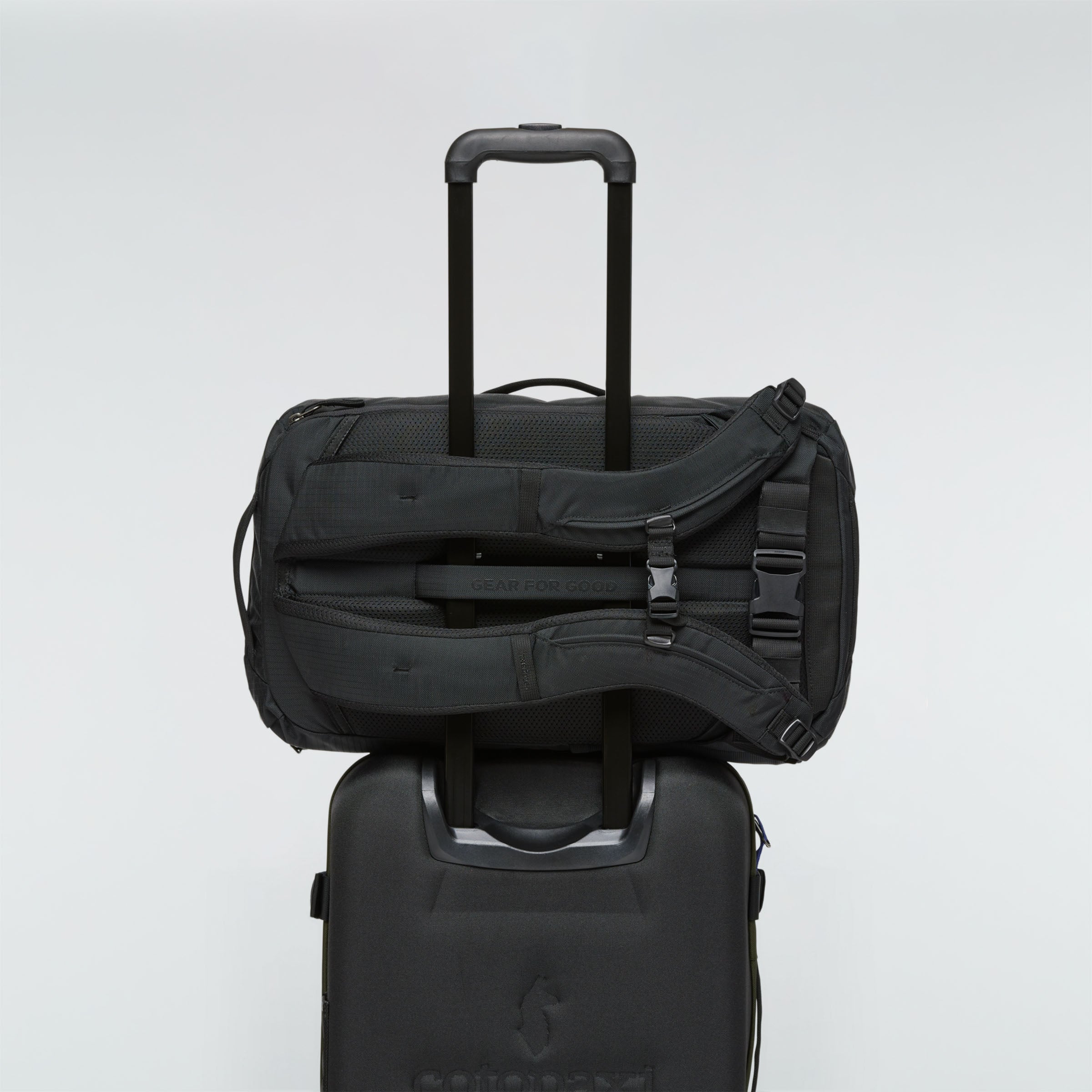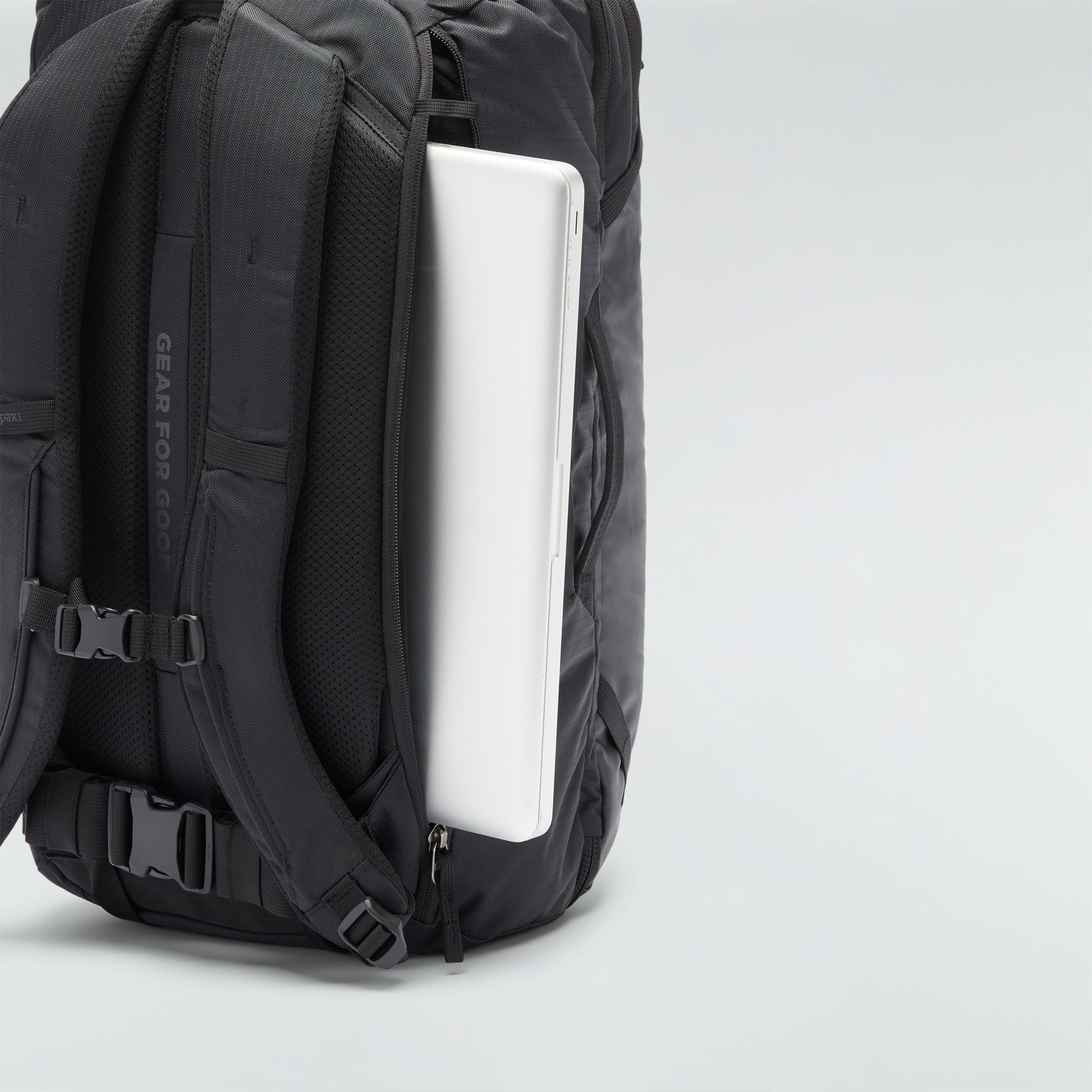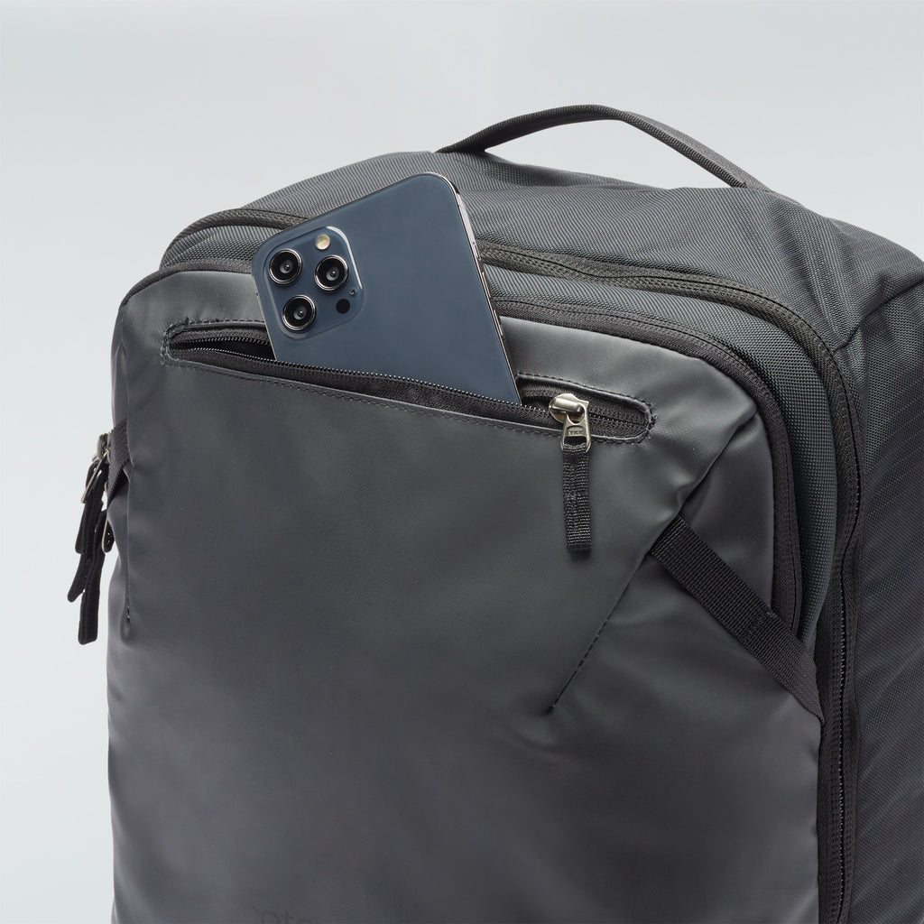 Gepolsterte Fächer für Laptop und Tablet sind über einen Reißverschluss an der rechten Außenseite zugänglich, und ein unterteiltes Fach an der Oberseite ist für Pässe und andere Kleinigkeiten vorgesehen. Die Schulter- und Hüftgurte sind in einer geschlitzten Rückwand untergebracht, damit du nicht in den Gepäckfächern oder auf dem Gepäckband hängen bleibst. Vier verstärkte Tragegriffe bieten mehrere Tragemöglichkeiten, wenn die Schultergurte heruntergeklappt sind, und zwei zusätzliche Befestigungspunkte an der Oberseite des Rucksacks ermöglichen das Tragen von mehr Gepäck.