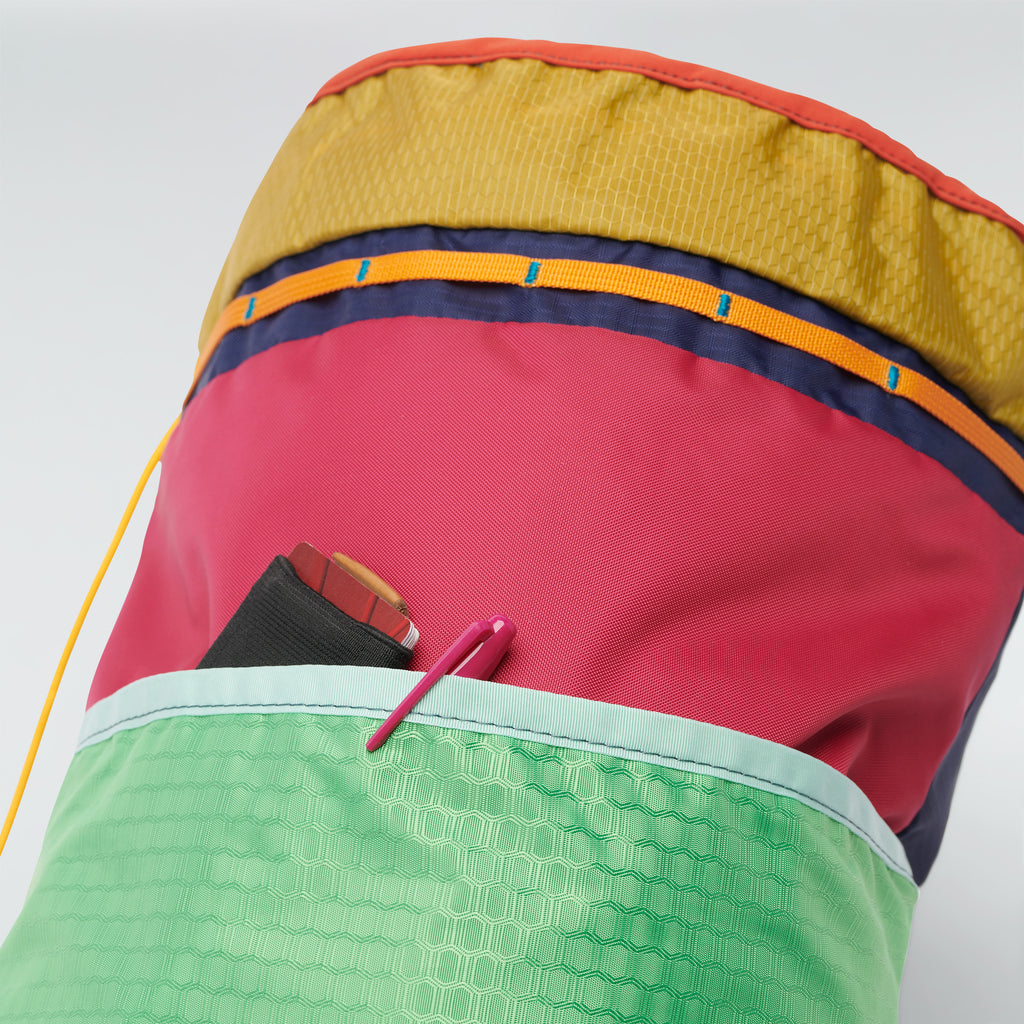 Der Tago Drawstring Backpack ist unsere erweiterte Variante des klassischen Rucksacks. Er verfügt über eine Zubehörtasche auf der Rückseite, Tragegriffe an der Oberseite, eine Zubehörtasche auf der Vorderseite und eine Daisy Chain auf der Vorderseite, an der man zusätzliche Dinge befestigen kann.